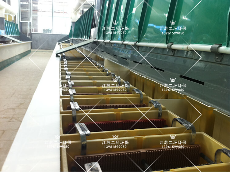 極板化成線,又稱為電池外化成酸霧回收裝置。鉛酸蓄電池的正負(fù)極板在稀硫酸中浸泡,并同時(shí)通電,進(jìn)行極板外化成,生成鉛氧化物活性物質(zhì)。整個(gè)系統(tǒng)有酸槽、酸霧吸罩,酸霧風(fēng)管、酸霧凈化塔構(gòu)成。類似酸洗槽、磷化槽、電解槽裝置。