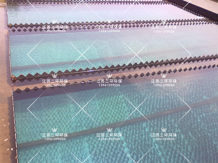 5、高效凈化處理:斜板沉淀器設(shè)置混凝反應(yīng)區(qū)、主流區(qū)、過(guò)渡區(qū)、斜板區(qū)、清水區(qū)等 5 個(gè)區(qū):混凝反應(yīng)區(qū)的主要作用是通過(guò) PAC、PAM 的作用將廢水中細(xì)小的難以沉降的物質(zhì)捕集,使之成為較易沉降的礬花。主流區(qū)位于斜板沉淀池底部的流動(dòng)區(qū),它的主要作用是傳輸待分離的混合液進(jìn)入斜板區(qū),沉淀后的污泥又從此處進(jìn)入斜板沉淀池污泥斗。過(guò)渡區(qū)的作用是消能和調(diào)整流態(tài),防止污泥上翻,保證固液分離效果;同時(shí),它還具有均勻進(jìn)水和作為污泥回流通道等功能,起著雙向傳輸?shù)淖饔谩P卑鍏^(qū)是泥水分離的實(shí)際區(qū)域,在這里,污泥絮凝體形成并在重力作用下沉降到斜板上,澄清后的污水進(jìn)入清水區(qū)。清水區(qū)能夠分隔沉淀工作區(qū)與出水堰,使斜板區(qū)的沉降過(guò)程不受出水水流影響;鋸齒形溢流堰比普通水平堰更易加工也更易保證出水均勻。