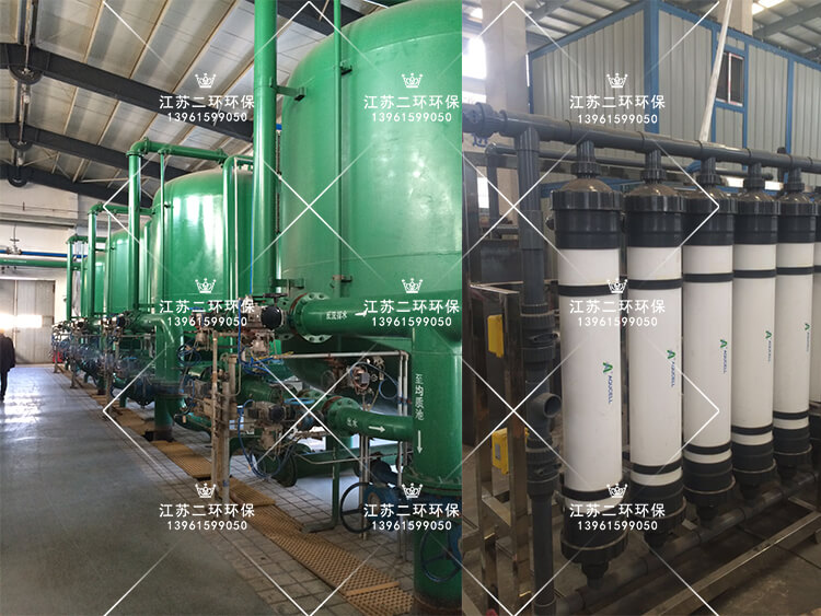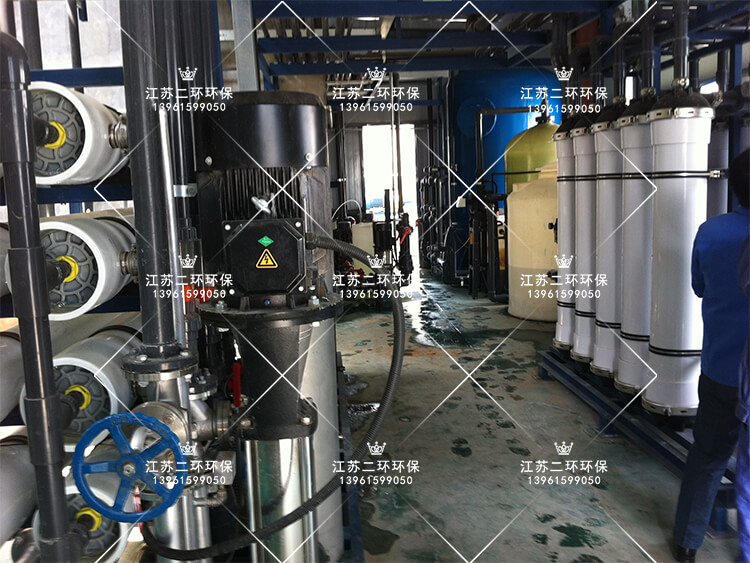 由于處理中水含膠體含量較高,為減少后級反滲透運行負載,增加超濾裝置,超濾是一種加壓膜分離技術,即在一定的壓力下,使小分子溶質和溶劑穿過一定孔徑的特制的薄膜,而使大分子溶質不能透過,留在膜的一邊,從而使大分子物質得到了部分的純化。