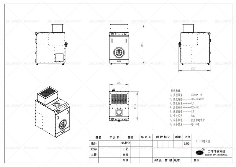 3、PT-1H型移動(dòng)焊煙單機(jī)圖紙(下圖)注意:濾筒+活性炭=2級(jí)過(guò)濾喔!
